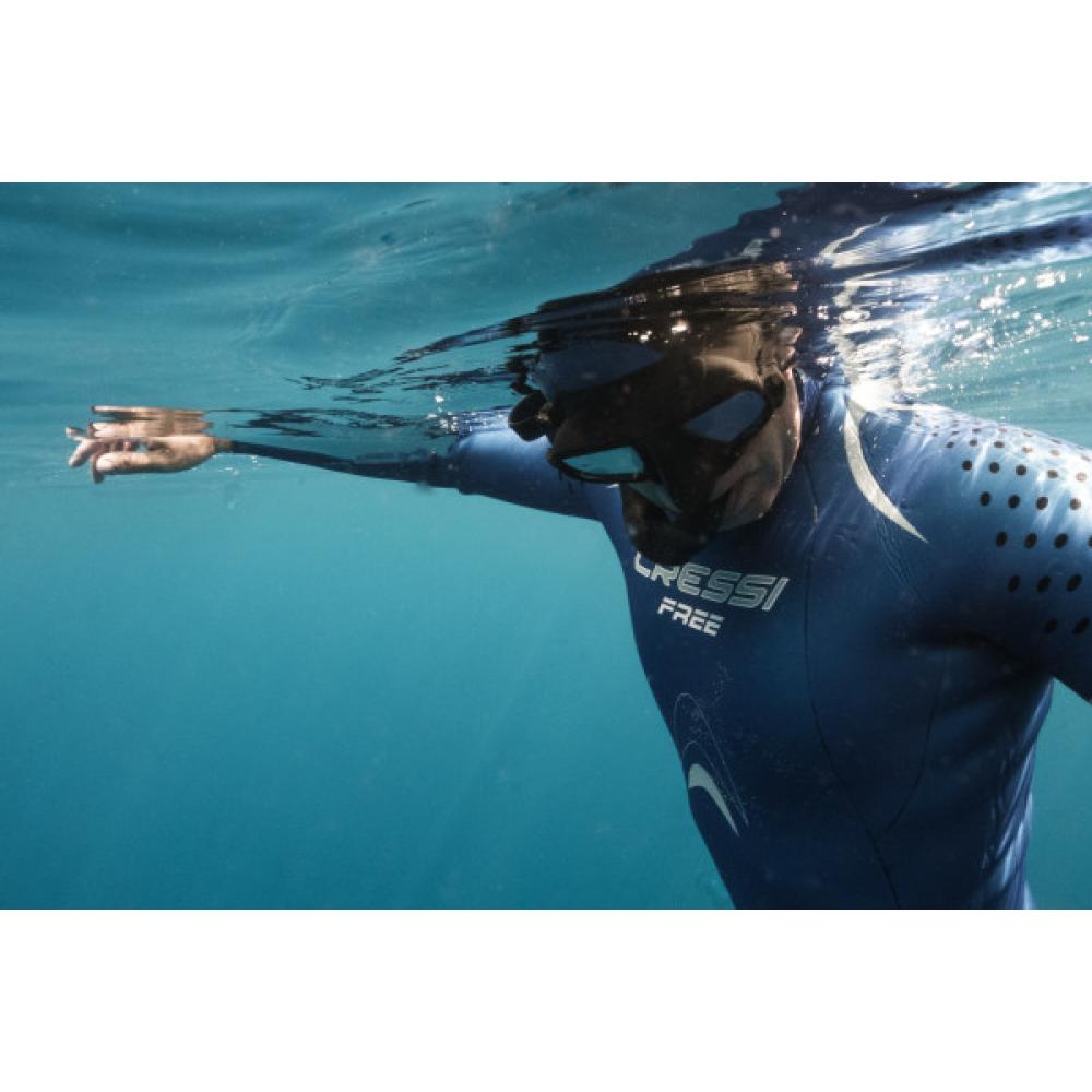 Atom is a mask for the most demanding freediver. It is a radical mask, featuring an incredibly low internal volume, designed for freediving. It is a frameless mask. Construction material has been redu