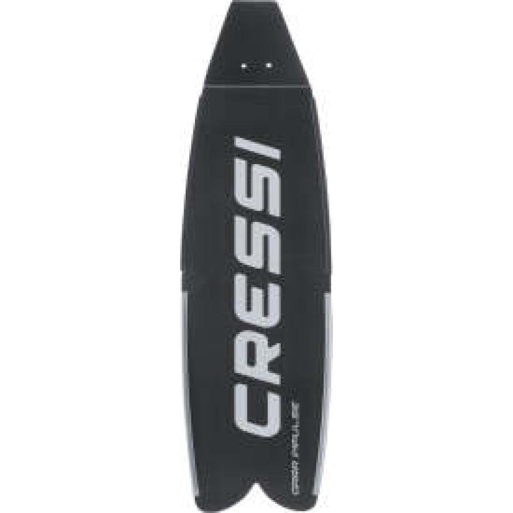 Blade replacement for long Cressi Gara Modular Impulse freediving fins. The Gara Modular Impulse Blade is made of high-modulus propylene (2500 Mpa). The blade is made of long-lasting material, very reactive, and highly elastic return. It incorporates two little antiskid spoilers on the final area. The decreasing thickness section (from 4mm to 2mm) causes the highly progressive tonnage eliminating the skid tendency because the first half of the set is more rigid and the final half is more flexible. The Impulse blade features an angle of 29 degrees, providing the ultimate in efficiency during the kick cycle requiring less energy.