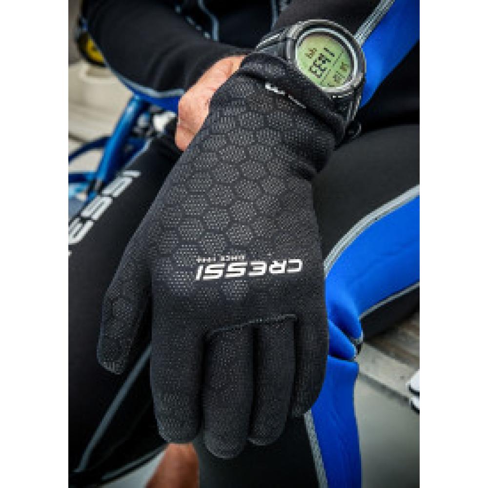 5-finger gloves made from single-lined soft, highstretch neoprene. The inside is covered in Metallite to make them easy to put on. The preformed shape favours the natural position of the hand, with se