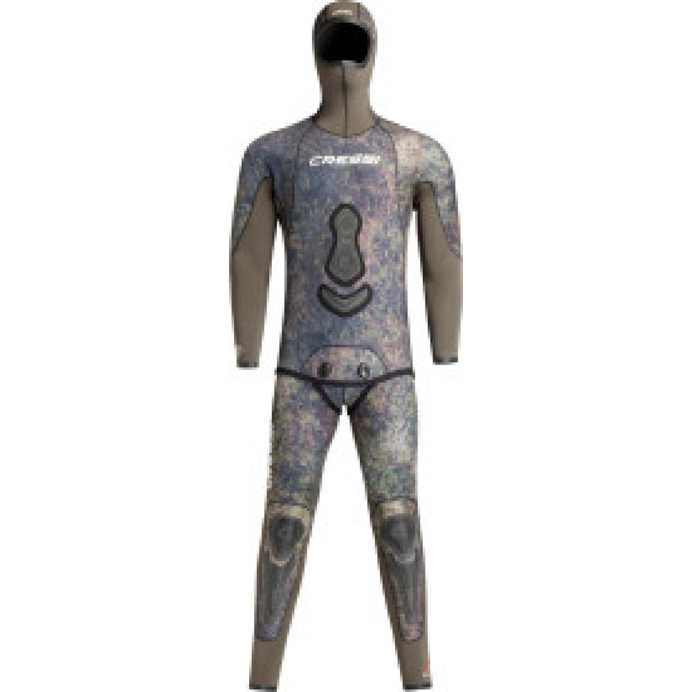 The Seppia 2-piece freediving wetsuit features an innovative camouflage design, a replica of the seabed created from high-resolution photographs selected by the Cressi team among the various options,